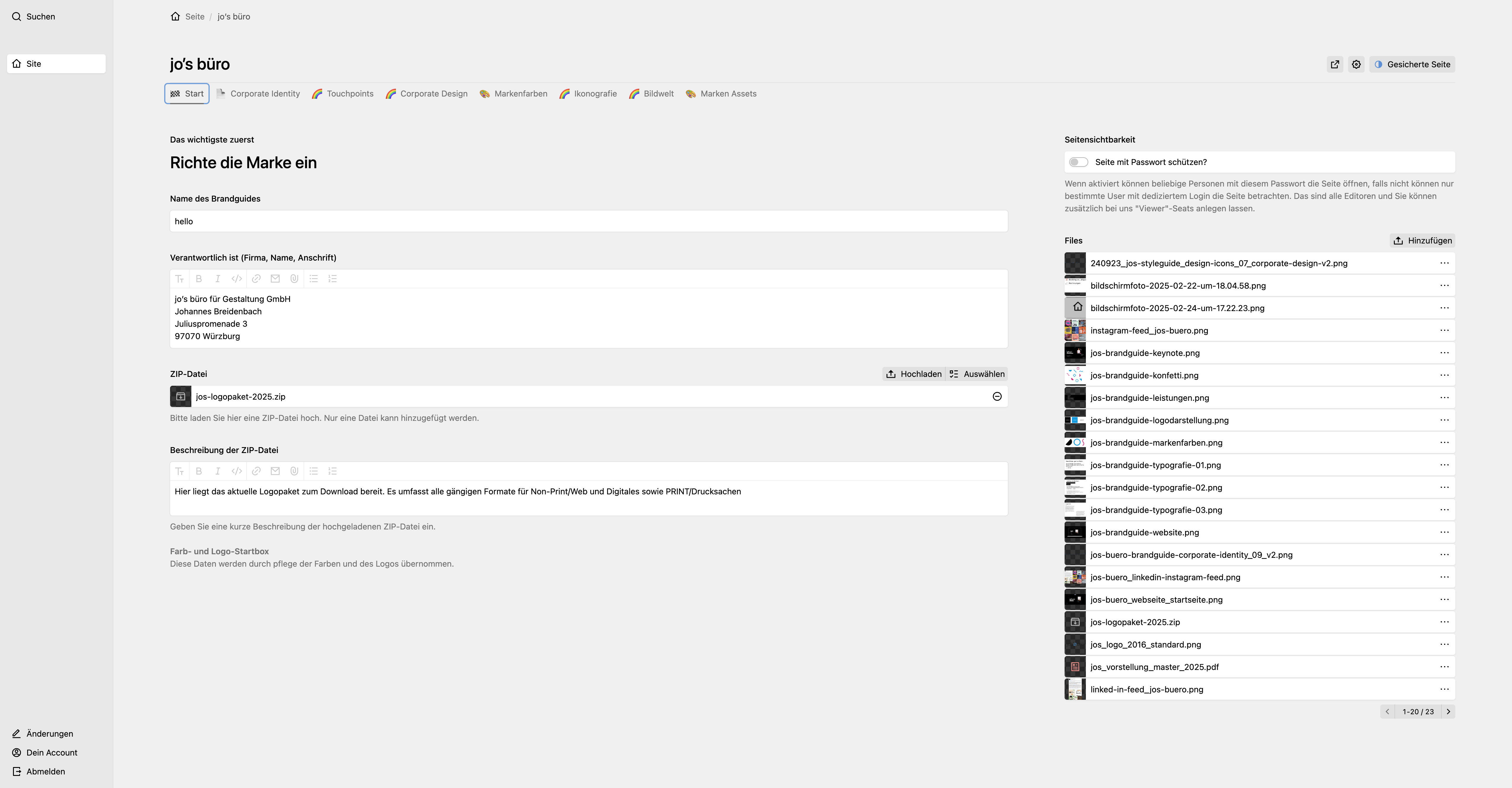 Die CI ist das Herzstück Deiner Marke, definiert Deine Werte und steuert die Kommunikation. Nutze dieses Tool als Navigationssystem, um alle Elemente Deines Markenauftritts – vom Logo über Farbpaletten bis hin zum Tonfall – zu verwalten und zu teilen. Mit einem stets aktuellen, leicht zugänglichen Styleguide als Leuchtturm sicherst Du einen einheitlichen Kurs über alle Kanäle hinweg.